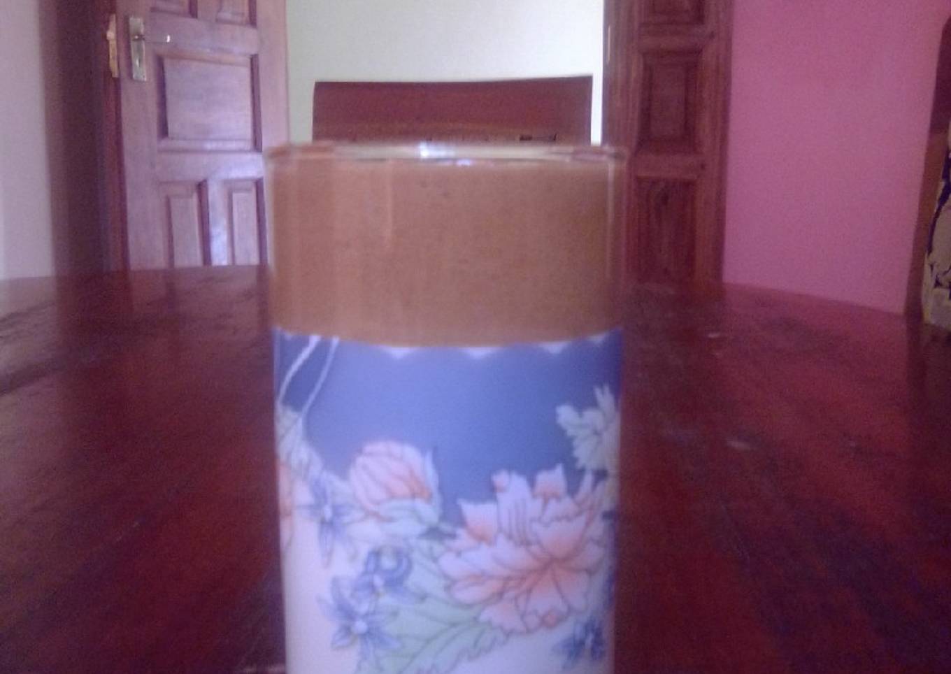 - Whisk until pale brown, thick and creamy. In a glass put the milk and the thick coffee mixture at the top and garnish with cocoa powder.